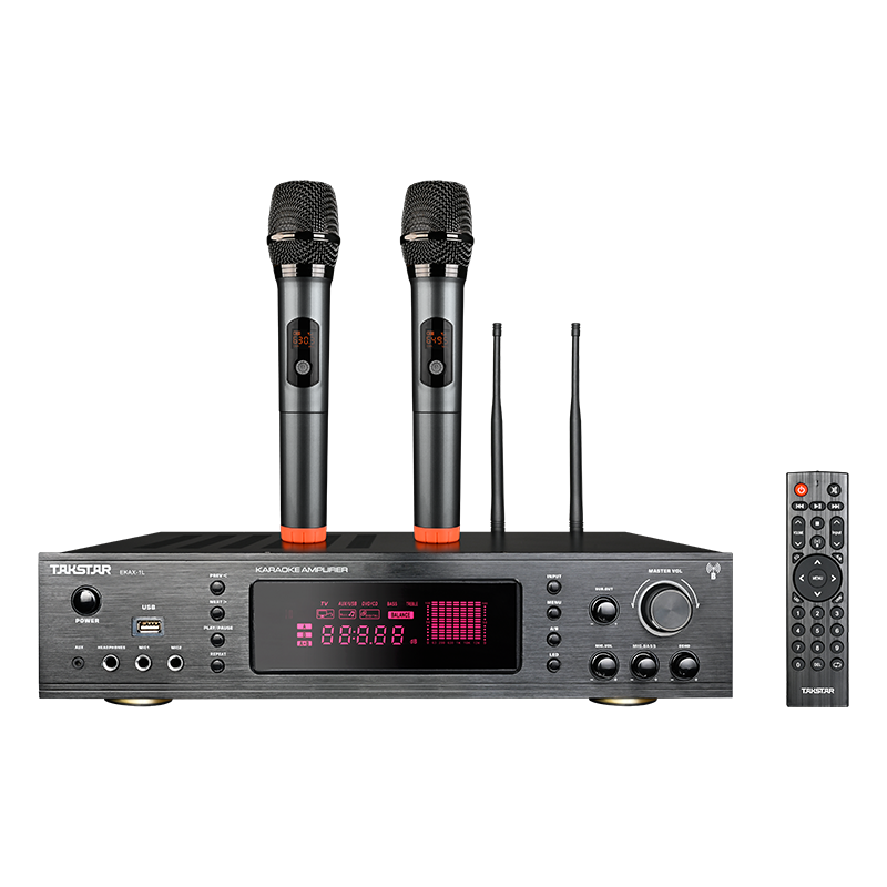 • Hai đầu vào micro có dây, với hai micro không dây UHF, mạch chống phản hồi