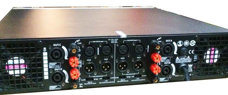 Công suất đầu ra: 2 x 650W ở 4 Ω 2 x 450 W ở 8 Ω